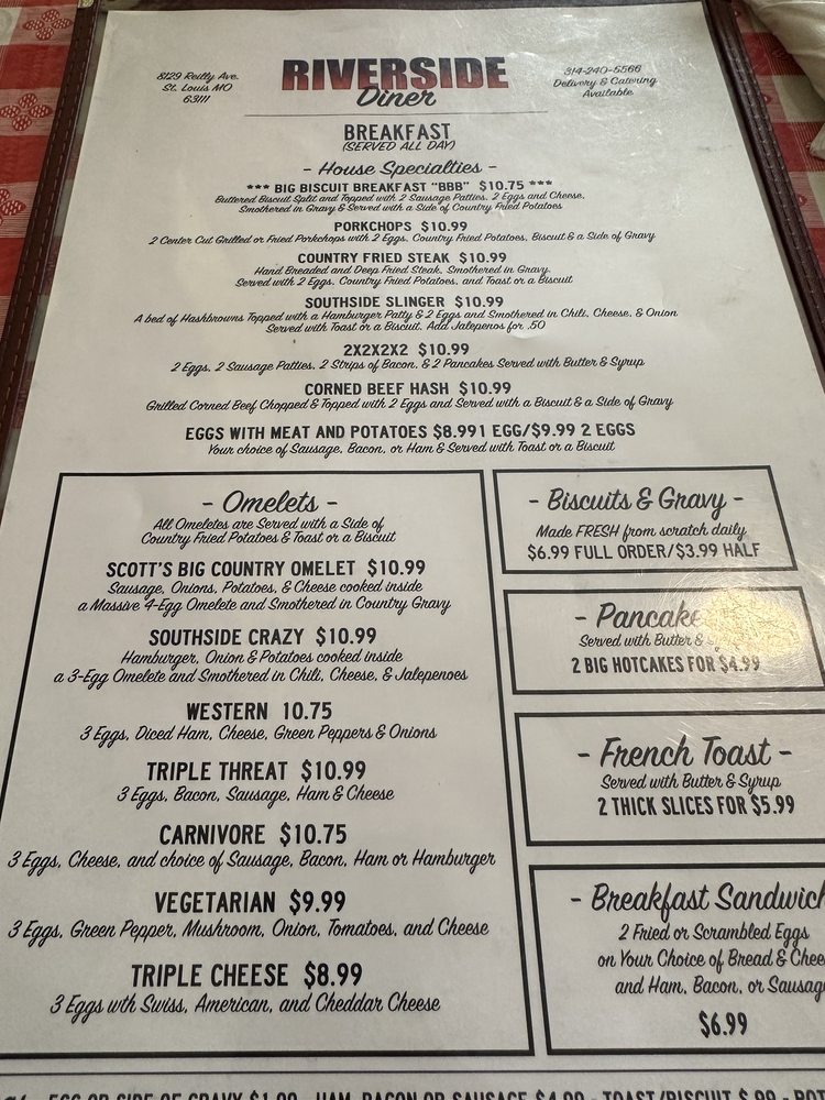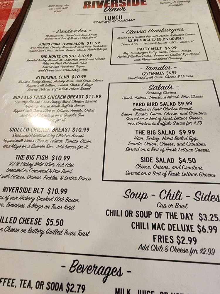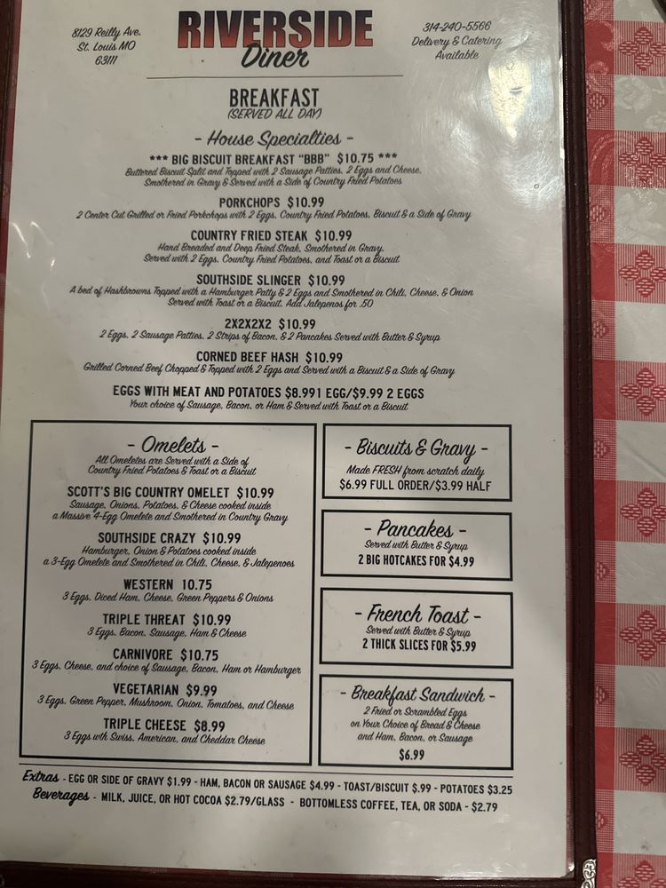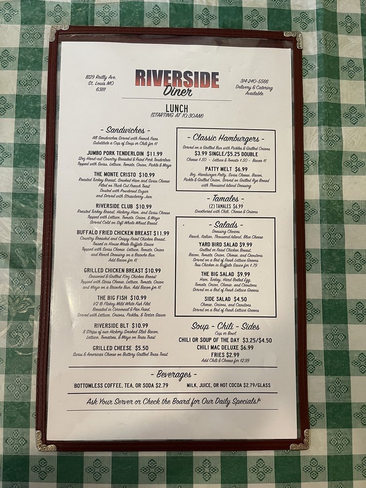 Riverside Diner Menu (Update 2025)
